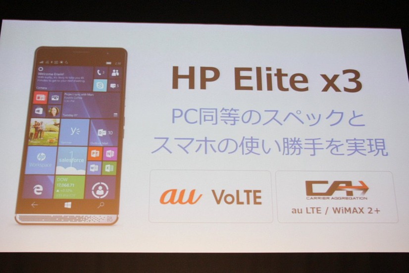 日本HPは31日、auのVoLTEに対応したWindows 10 Mobile搭載スマートフォン「HP Elite x3」に関する製品説明会を開催した。法人向けに9月5日より販売を開始する。販売価格は税抜77,800円から。
