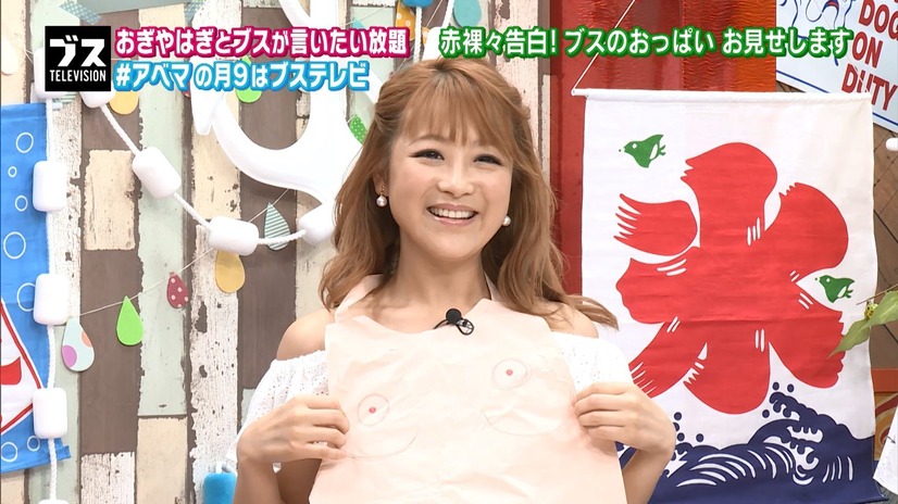 タレントの鈴木奈々が17日、お笑いコンビ・おぎやはぎの2人がMCを務めるAbemaTVの番組『おぎやはぎの「ブス」テレビ』に出演し「バカみたいなおっぱい」を披露した。