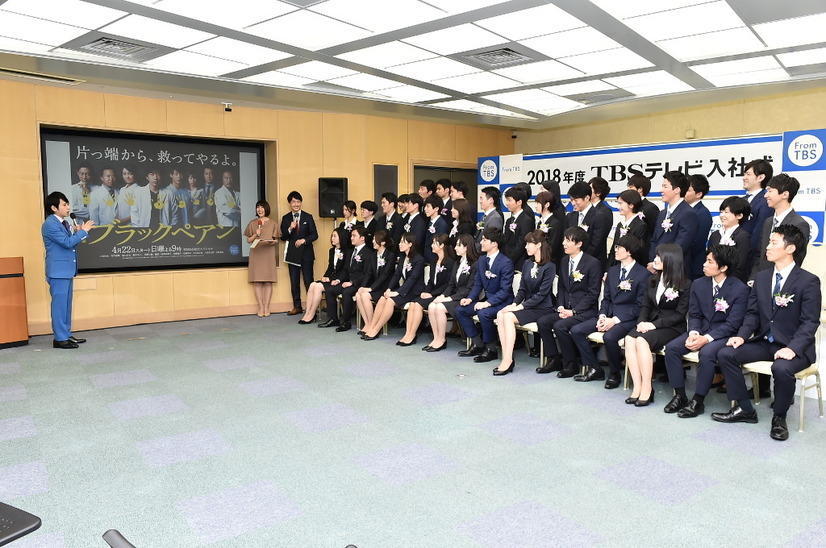テレビドラマ『ブラックペアン』(TBS)で主演を務める二宮和也がTBSテレビの入社式にサプライズゲストとして登場した。
