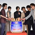 映画『50回目のファーストキス』は、現在公開中。公開日翌日となる2日には東京・TOHOシネマズ六本木ヒルズにて公開記念舞台挨拶が行われ、主演の山田孝之、長澤まさみ、共演のムロツヨシ、佐藤二朗、太賀、山崎紘菜、福田雄一監督が参加した。