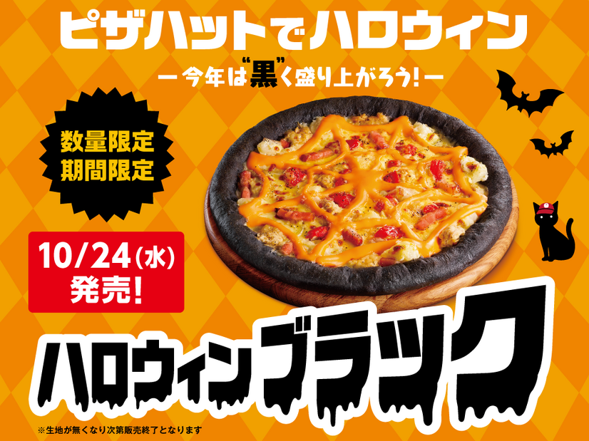 日本ピザハットは、新商品「ハロウィンブラック」を10月24日から10月31日の期間限定で販売する。