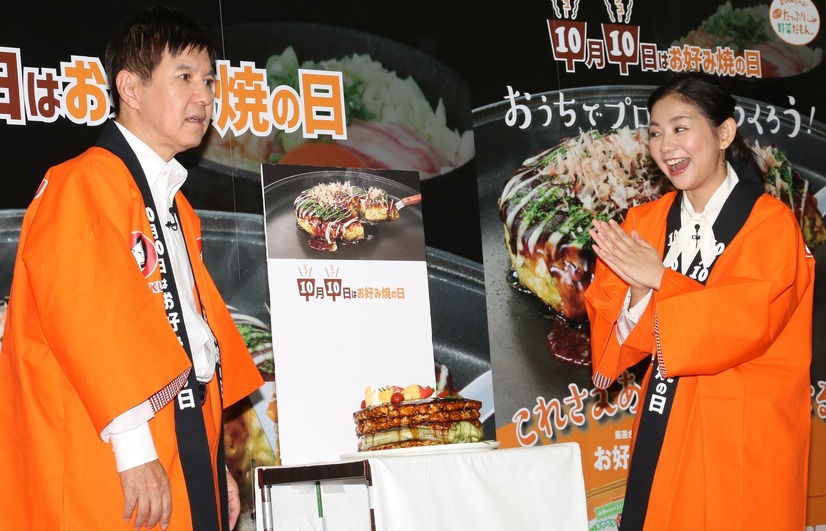 タレントの関根勤&麻里親子が4日、都内で行われた「10月10日はお好み焼の日記念『ジュージュー号』出航記念イベント記者発表会」に出席した。