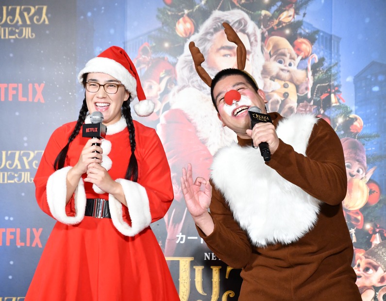 先月28日に結婚しお笑いコンビ・たんぽぽの白鳥久美子とお笑いタレント・チェリー吉武、子役の新井美羽が14日、都内にて開催されたNetflixオリジナル映画『クリスマス・クロニクル』配信記念イベントに出演。白鳥と吉武が夫婦漫才を初披露した。