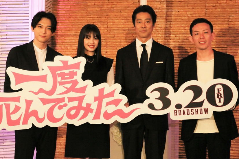 広瀬すず、吉沢亮、堤真一、浜崎慎治監督が10日、都内のチャペルで行われた映画『一度死んでみた』大ヒット祈願ミサに出席した。