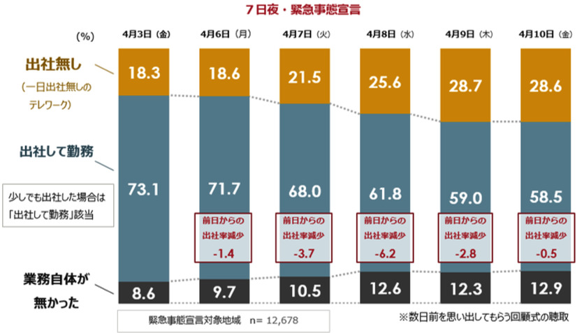 緊急事態宣言で「テレワーク」「出社率」どう変わった?調査結果が明らかに 2枚目の写真・画像