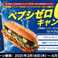 ロッテリアは、「ペプシゼロ 0 円」キャンペーンを4月14日まで延長して開催すると発表した。