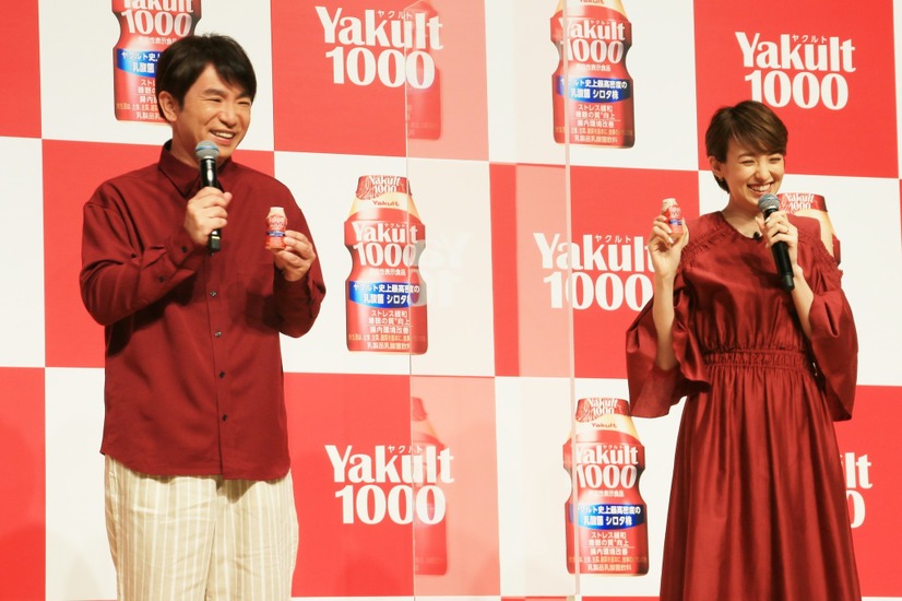 よゐこの濱口優と南明奈夫婦、ピアニストの辻井伸行が5日、都内で行われた「Yakult(ヤクルト)1000」全国販売開始 記念イベントに登場した。