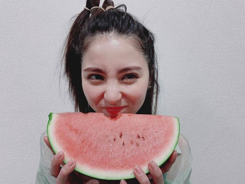 女優・石川恋が10日、自身のブログとInstagramを同時に更新。夏を先取りしたスイカを頬張る姿を公開した。