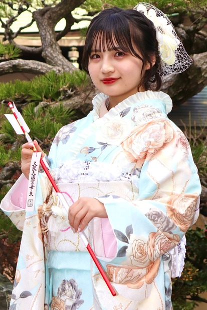 はたちのつどい(成人式)を迎えるNMB48の貞野遥香、佐⽉愛果、中野美来、早川夢菜、平山真衣、本郷柚巴、眞鍋杏樹が9日、大阪天満宮にて開催された『記念撮影会』に参加。あでやかな振袖姿を披露した。