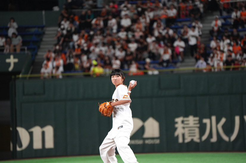 女子スケートボーダー・赤間凛音が、3日に東京ドームで行われた巨人対ヤクルト戦で始球式を務めた。