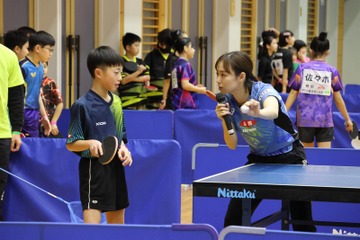 石川佳純、秋田の小学生に卓球指導 カレーを振舞うサプライズも