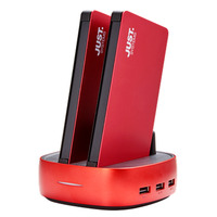 8,000mAhモバイルバッテリー2台&専用充電ドックのセット「JUSTロゴ入 2連モバイルバッテリー PowerStation RED」- ミスターカード株式会社