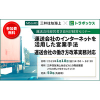 オンライン物流ネットワーク・トラボックスが平成31年1月18日(金)に、運送会社経営者様向けの無料の経営セミナーを三井住友海上火災保険株式会社と共催します。