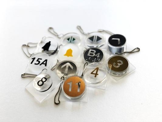 当商品は、『エレベーターボタンコレクション』と名づけて、形状や柄、色など100種類以上のバリエーションで展開しています。日頃からエレベーターボタンで馴染みのある “階数表示”や“開閉”のマークをはじめ、普段なかなか押すことができない“非常ボタン”、中国の高層ビルの“108階”のボタンなどを用意し、大人のコレクター魂をくすぐるコレクションです。また、キーホルダーといえども、本物のエレベーターボタンと同じ作業工程を踏み、職人の手で一つひとつ丁寧に作られています。