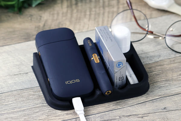 加熱式たばこ「アイコス」は、タバコ本体となる消耗品の「ヒートスティック」と、ヒートスティックを加熱して吸引する「アイコスホルダー」、アイコスホルダーの充電器を兼ねる収納ケース「ポケットチャージャー」の3つから構成されます。これらに付属する「クリーナー」も含めて、紛失のしやすさはアイコスユーザーの抱える問題の一つでした。それらを収納できる市販ケースを使用すれば、ひとまとめに管理・持ち運びできますが、卓上などで繰り返しアイコスを使用する際は出し入れに手間が発生します。