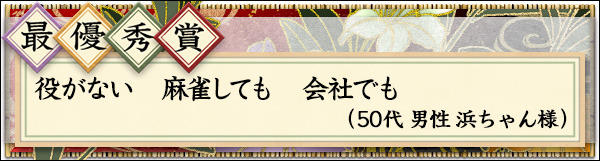 【最優秀賞】役がない 麻雀しても 会社でも (浜ちゃん様・50代男性)