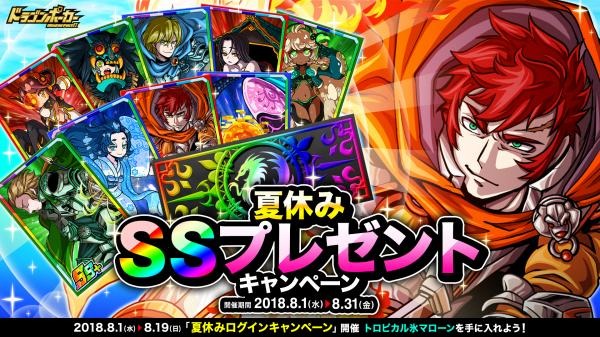 株式会社アソビズム(本社:東京都千代田区、代表取締役:大手智之)は、App Store・Google Playにて好評配信中のリアルタイム合体カードバトル『ドラゴンポーカー』で、2018年8月1日(水)より「夏休みSSプレゼントキャンペーン」を開催いたします。期間中にログインしたユーザーの方々全員が対象となりますので、ログインして好きなプレゼントを受け取りましょう!また、期間中、ログインすると「トロピカル氷マローン」がもらえる「夏休みログインキャンペーン」を開催いたします。『ドラゴンポーカー』に毎日ログインして、豪華プレゼントを手に入れましょう!