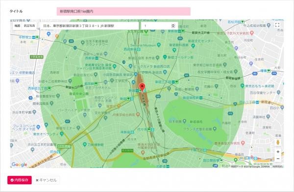 ・GPS取得ボタンで、地域を限定配信も可能