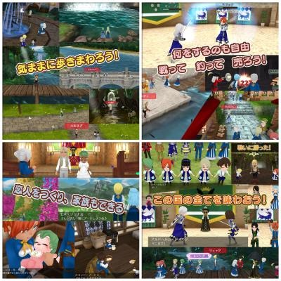 自由に動き回れる広大な国土は、美しい森と川、農場、牧場、鉱山、学校、教会、王城、闘技場、ダンジョンがあり、そしてそこに住むたくさんの人々の生活までも作り込まれた生きているパーチャルワールドとなっています。楽しみかたはいろいろ。やりこみ要素無限大です。