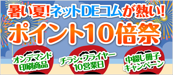 安いだけじゃない社内一貫生産で高品質が売りのネット印刷なら印刷通販ネットDEコム(東京都北区田端、運営:株式会社新晃社、社員99名)が暑さを吹き飛ばすポイント10倍キャンペーンを実施中。