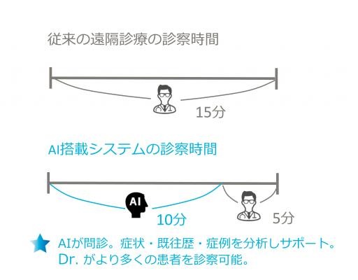 将来的には、オンライン診療サービスに、診断や処方箋に関してAIによるディープラーニングで、更に発展した便利な診療環境の実現を目指します。AIドクターによる24時間365日、いつでもどこでも患者と医者が安心して診療を受けられる世界で、さまざまな医療課題を解消していきます。