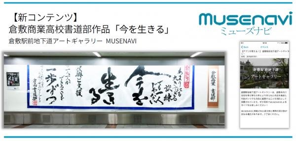 ピープルソフトウェア株式会社(岡山県倉敷市/代表取締役社長 木暮 知彦)は、多言語音声ガイドアプリ「 MUSENAVI(ミューズナビ) 」の新コンテンツとして「倉敷駅前地下道アートギャラリー」(管理者:倉敷市 建設局 まちづくり部 市街地開発課)に、本日、倉敷商業高校書道部作品「今を生きる」をリリースしたことをご報告します。本作品の現地での展示期間は8月31日までです。