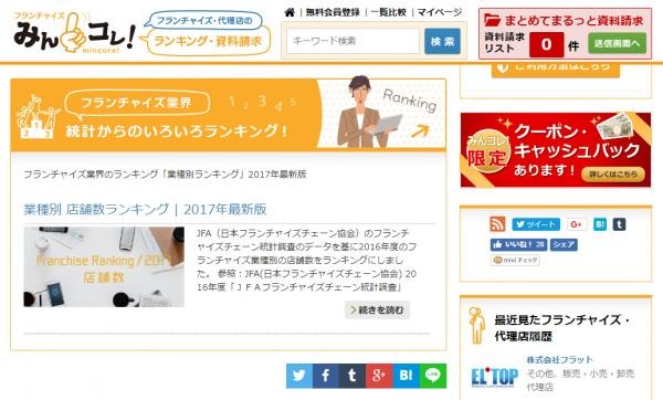 各種デザインやホームページ制作などのWEB開発を手掛ける株式会社インクル(本社:東京都江東区)は、2018年7月8日にサービスを開始したフランチャイズ・代理店のランキング・一括資料請求サイト【みんコレ!フランチャイズ】において、≪2017年最新版-フランチャイズ業界統計ランキング≫という新コンテンツの提供を8月2日に開始いたしました。