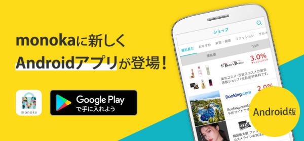 インターネット広告事業を展開する株式会社ファンコミュニケーションズ(本社:東京都渋谷区、代表取締役社長:柳澤安慶 東京証券取引所市場第一部:2461)は、2018年8月6日(月)、いつものお買い物がお得になるキャッシュバックサービス「monoka(モノカ)」<https://monoka.jp/>のAndroid版スマートフォンアプリを提供開始しました。