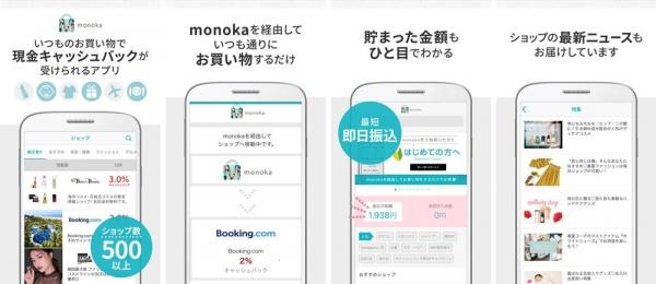 monokaは、ネットショッピングの際にmonoka経由で購入するだけで現金が戻ってくる、キャッシュバックサービスです。ポイント還元ではなく現金キャッシュバックのため、交換の手間や利用制限、交換までのタイムラグがなく、口座登録をすれば最短即日に振込が可能です。これまでWebサイトおよびiosアプリのみの展開でしたが、先行してリリースしたiosアプリ経由の利用状況を踏まえ、今回、ブログシステムやアプリ開発を行う連結子会社のシーサー株式会社と共同でAndroidアプリ開発を行いました。