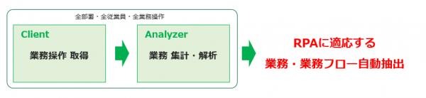 狙い:RPAによる業務の効率化を行うために必要となる業務情報の収集、集計、分析が人手によることなく実施でき、RPA導入が促進される