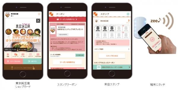 「Zeetleカードサービス」とは、顧客がスマートフォンアプリ「Zeetle」をダウンロードし、お店のカードを取得するだけで様々な特典やサービスが受けられるスマホ専用のスタンプカードです。来店時にBluetoothの起動やQRコードを読み取りが不要。顧客はスマートフォンを専用端末にタッチするだけのシンプルなオペレーション。店舗は利用者の来店回数や最終来店日を把握した上で、特定の条件の顧客だけにプッシュメッセージで特典を届けるなど、より柔軟で効果的なキャンペーン施策が可能です。