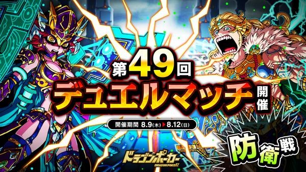 株式会社アソビズム(本社:東京都千代田区、代表取締役:大手智之)は、App Store・Google Playにて好評配信中のリアルタイム合体カードバトル『ドラゴンポーカー』で、2018年8月9日(木)より「第49回デュエルマッチ本戦」を開催いたします。