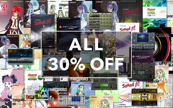 音楽作成・ボーカル作成・サウンド編集・プラグインエフェクト・ソフトウェアシンセサイザー・文章読み上げソフトを30%OFFでご提供します。