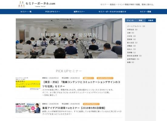 起業家向け会員制シェアオフィス・コワーキングスペース・バーチャルオフィスを運営する株式会社ナレッジソサエティ(本社:東京都千代田区、取締役社長:久田敦史)は掲載者・参加者ともに完全無料のセミナーポータルサイト「セミナーポータル.com」を2018年9月1日に正式リリースしました。