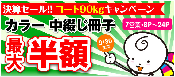 【第二弾】 カラー中綴じ印刷のコート90kgが半額