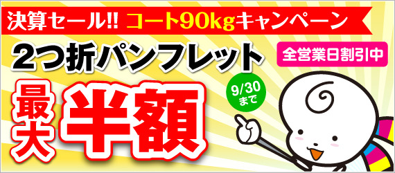 【第三弾】 2つ折パンフレット印刷のコート90kgが半額