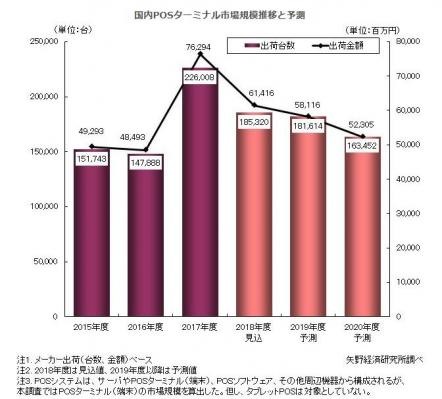 2017年度の国内POSターミナル市場は、前年度比152.8%の22万6千台、同157.3%の763億円と急拡大!