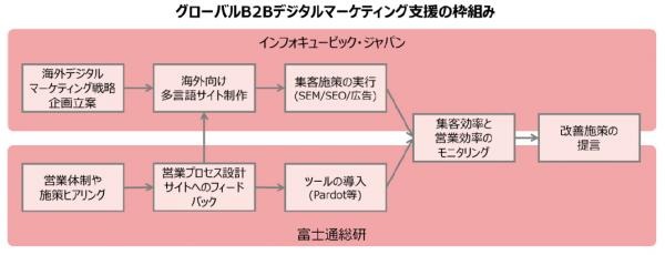 インフォキュービックは富士通総研と提携し、国内B2B企業の海外マーケットにおける「グローバルB2Bデジタルマーケティング」支援サービスを2018年9月3日より開始いたします。