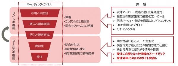 また、もし多言語サイトが準備できたとしても営業の武器になっているかはまた別の問題です。B2Bデジタルマーケティングの難しさは、サイトの役割とセールスの役割の連携にあります。問い合わせ件数だけを重視すると、購入意欲の低い見込み顧客(リード)ばかりが集まり、営業の効率化は実現しません。質のよいリードを獲得するには、セールス側からサイト側へのフィードバックが重要となります。