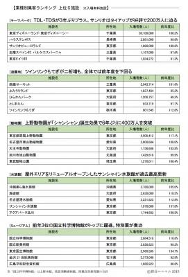 ◎業種別でトップ10の総入場者数が前年度より最も伸びた動物園(前年度比7.8%増)は、ジャイアントパンダの赤ちゃん誕生で話題となった「東京都恩賜上野動物園」(同17.1%増)をはじめ8施設がプラス成長。アニメとコラボした「東武動物公園」(同8.4%増)や、てんしば・あべのハルカスとの相乗効果でインバウンド客が増加した「天王寺動物園」(同3.8%増)などは新たな客層を獲得。