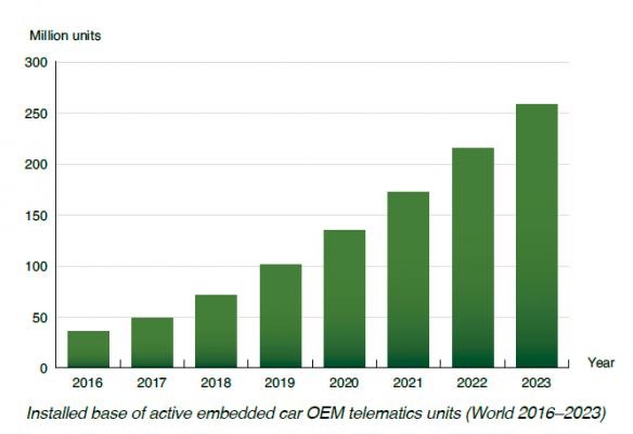 What are the latest trends on the global car OEM telematics market? Berg Insight estimates that nearly 33 percent of all cars sold worldwide in 2017 were equipped with OEM embedded telematics. Examples of applications include eCall and roadside assistance, stolen vehicle tracking, vehicle diagnostics, connected navigation and infotainment, Wi-Fi hotspot, convenience applications, over-the-air updates, in-vehicle payments, usage-based insurance, leasing and rental fleet management, as well as electronic road charging. Get up to date with the latest industry trends in this new 250-page report in Berg Insight's M2M Research Series.