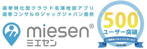 ジャッグジャパン株式会社(本社:東京都渋谷区、代表取締役:大濱崎卓真)は、同社が提供する選挙特化型クラウド名簿地図アプリ「ミエセン」( https://miesen.jp )の利用者数が500人を突破しましたので、お知らせいたします。
