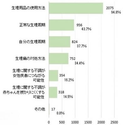 自由回答では、「何度か聞いた内容でも、その時どきの最新の情報と合わせて学ぶ機会が欲しい」、「高校進学や大学進学などの区切りで、年齢に合わせた情報を知りたい」などの意見があがりました。「婦人科医の講演に参加し、その時の自分に必要な対処法を聞いた」という積極的な方もおり、たとえ過去に一度は学んだ内容であっても、ライフステージや体調の変化などによって、追加で必要な情報が異なることが読み取れます。