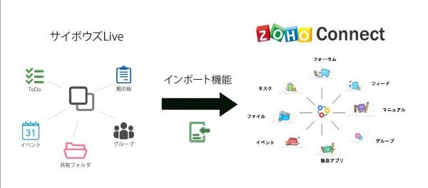 今回の新機能では2019年4月15日にサービス提供が終了すると発表された「サイボウズLive」のデータ移行が手間なく行えます。『Zoho Connect』は「サイボウズLive」のサービス提供終了発表後からその代替となるグループウェアとして問い合わせの数も増えています。