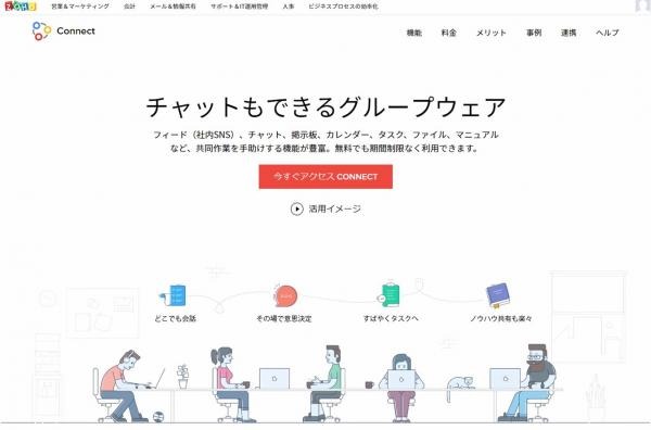 プロジェクトやチームごとのアイデア共有や話し合い、マニュアルや情報の共有、作業効率化のための独自アプリ作成など組織の様々な“モノ”や“コト”をConnectし、効率的な新しいワークスタイルを実現します。15グループまで利用可能な無料プラン、社内外ネットワークを作成して利用できる有料プランから選べます。Webブラウザからの利用のほか、iOS/Androidに対応したモバイルアプリから利用できます。
