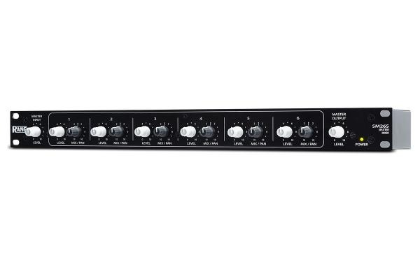 SM26S、様々な用途で使用されることを想定して精巧に設計された汎用性の高い6チャンネルラインレベルスプリッター・ミキサーです。レベルとパン・コントロールが可能な6系統のバランス、アンバランス・ラインレベルの入力に加え、ステレオマスター入力を使用すると、合計で8系統の入力が可能です。ミックスした音声は、全体のマスター出力レベルコントロールに送られ、リアの左右出力に送られます。スプリッターモードでのSM26Sは、1ライン、または2ラインのレベルレベル入力を受け取り、リアの6系統のモノ出力のいずれかにスプリットすることができます。このモードのミックス/パンコントロールは、2系統の入力バスのそれぞれからのレベルを各出力に適用するように調整します。内部ヘッダーブロックにより、ミックス出力が独立したステレオ出力になり、合計で8系統の出力が可能になります。