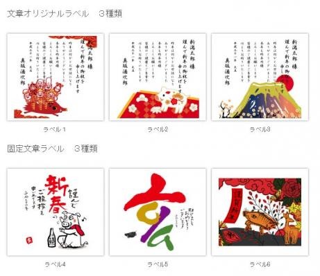 年賀状を模したラベルは、新年の干支である「亥(イノシシ)」の年賀状のデザインで、一部ラベルにおいてはオリジナルで新年のご挨拶の文章、お名前をご指定頂けるセミオーダーシステムを採用しています。