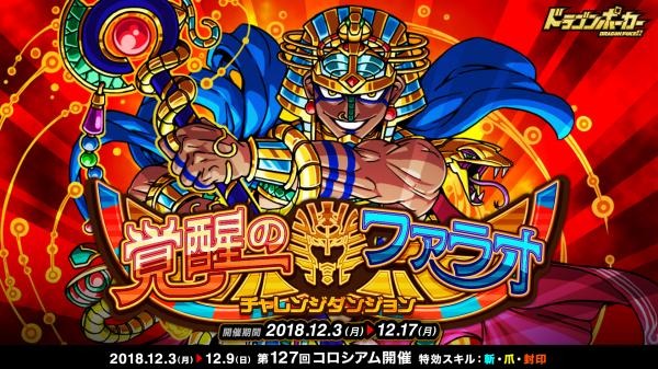 株式会社アソビズム(本社:東京都千代田区、代表取締役:大手智之)は、App Store・Google Playにて好評配信中のリアルタイム合体カードバトル『ドラゴンポーカー』で、2018年12月3日(月)より新チャレンジダンジョン「覚醒のファラオ」を開催いたします。本ダンジョンでは、覚醒進化が解禁となる「ファラオ」がボスモンスターとして登場!フレンドと協力して強力なボスを倒し、レアアイテムを手に入れましょう!
