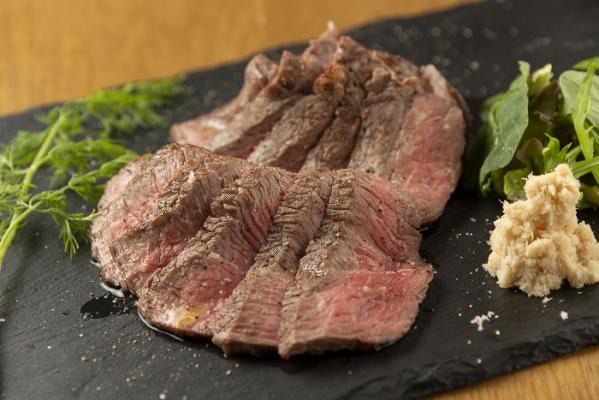 ■白老町「白老牛のビステカ~山わさび添え~」白老牛のランプの上品な味わいをしっかり楽しめるよう、ビステカに。北海道らしく、甘みのある山わさびをアクセントに添えてお召し上がりいただきます