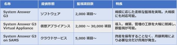 今回の発表により、システム情報管理ソフトウェア「System Answer G3」は以下の3形態にてご利用いただくことが可能になります。